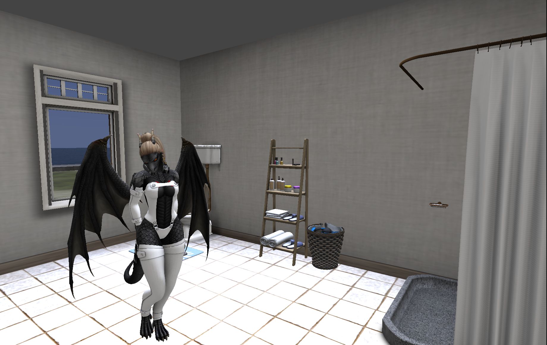 The room is equipped, beside the toilet, for a quick reapplication of rouge or the removal of bloodstains, same as for taking a quick shower after a long workday.